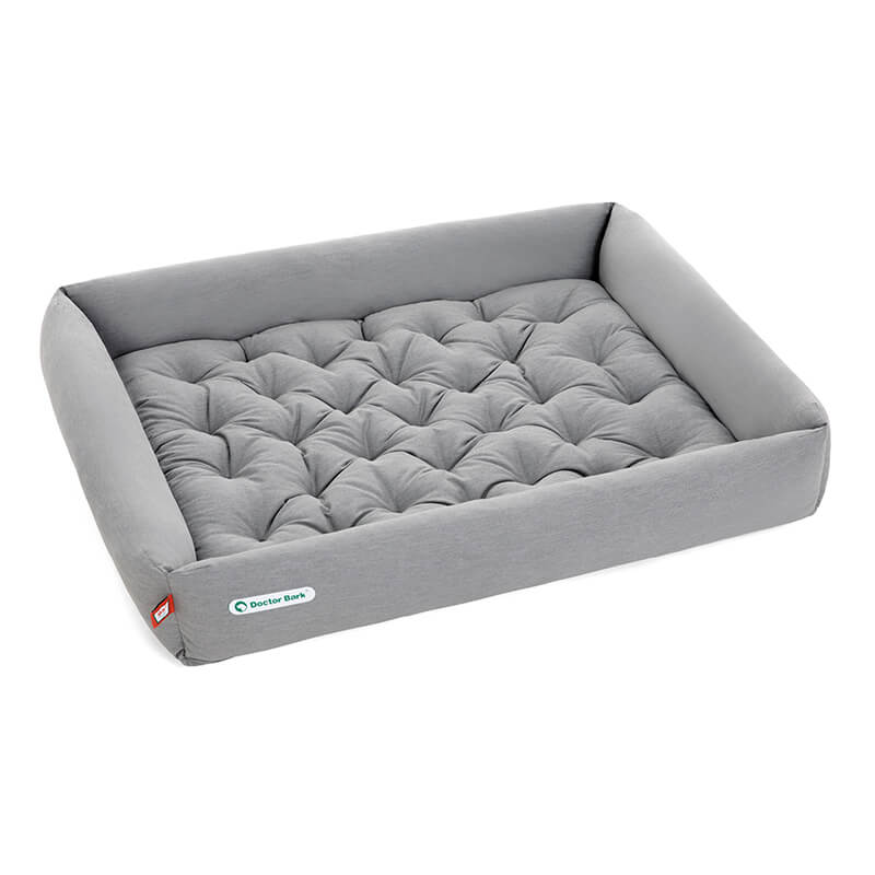 Doctor Bark Orthopedische Hondenmand Licht Grijs is een hondenmand met opstaande rand met daarin een inlegkussen.
